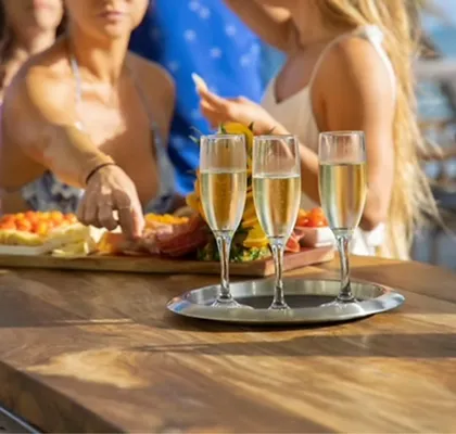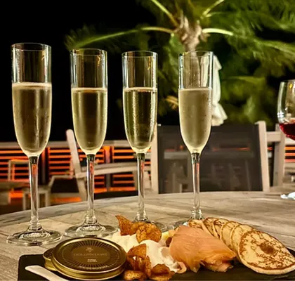 Located above The Rhum House, the Palm Deck boasts an unparalleled ocean view. The casual atmosphere is perfect for a group of friends and an order of tapas.